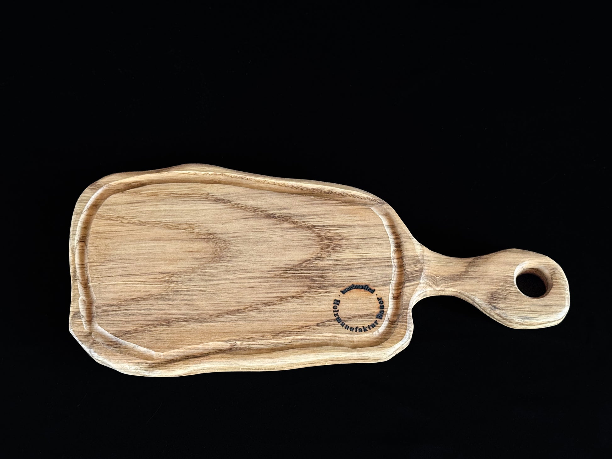„Eichenherz“ ist ein handgefertigtes Brotzeitbrett aus massiver Eiche – rustikal, langlebig und mit natürlichem Charakter. Die markante Maserung und der Saftrillenrand verleihen dem Brett eine harmonische Kombination aus Funktionalität und Design.