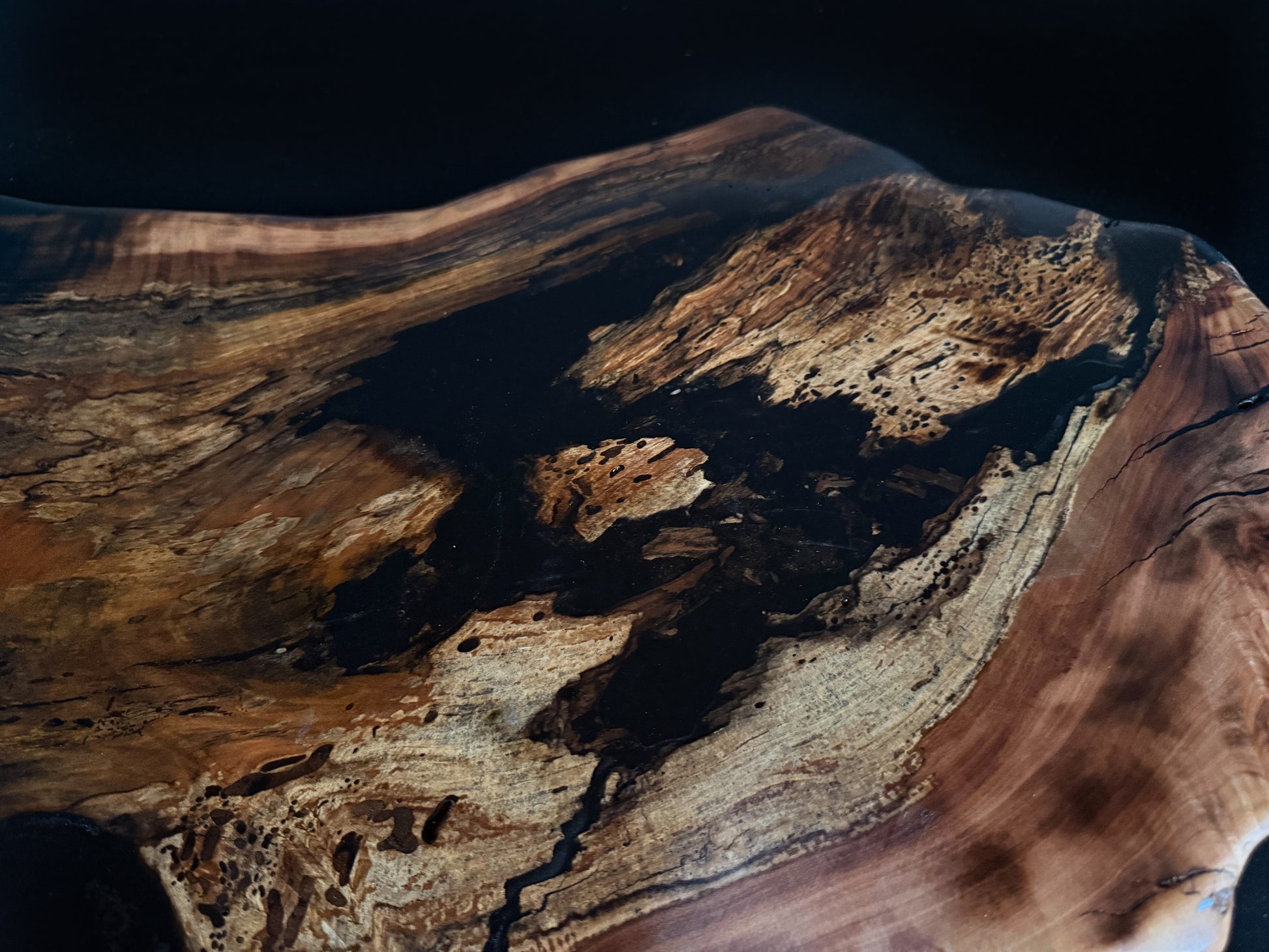 Jede Fläche wurde sorgfältig geschliffen, geölt und poliert, um Maserung und Epoxyglanz perfekt zur Geltung zu bringen.